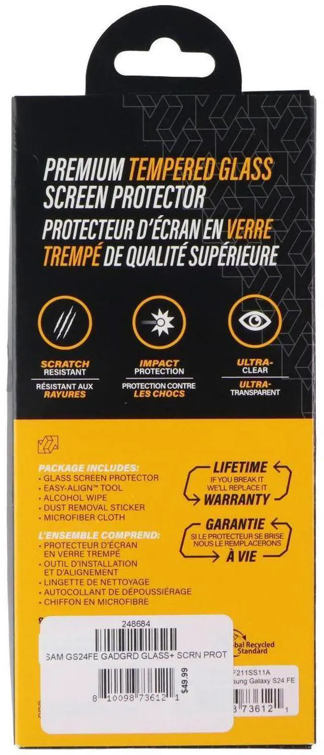 The Gadget Guard Glass Screen Protector for Samsung Galaxy S24 FE Smartphones.