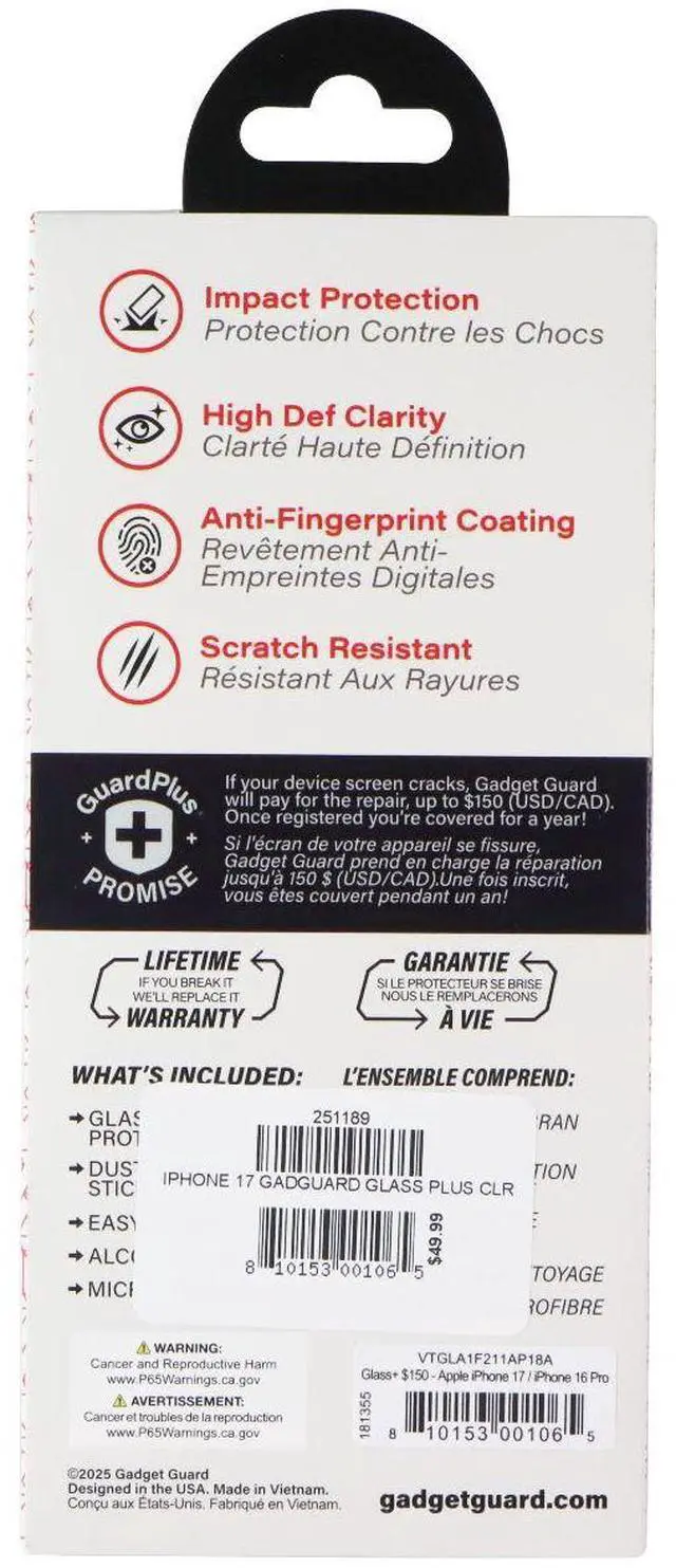Gadget Guard Glass Screen Protector for Apple iPhone 17 / 16 Pro