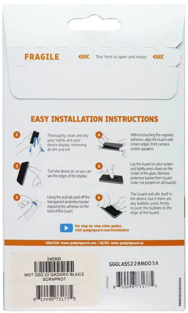 Gadget Guard Tempered Glass Screen Protector for Motorola G 5G (2022).