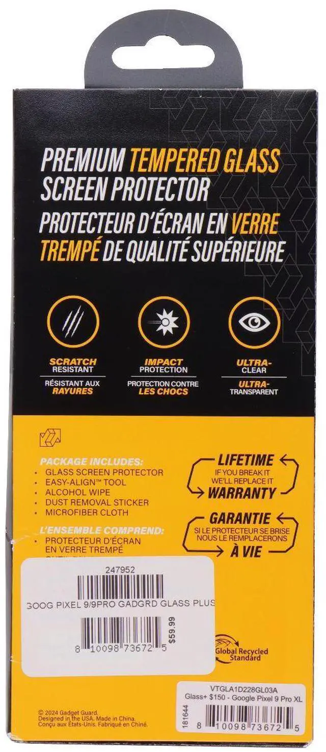 The Gadget Guard Glass Screen Protector for Google Pixel 9 Pro XL Smartphones Features:Scratch ResistantImpact ProtectionUltra ClearIncludes Easy Align Tool