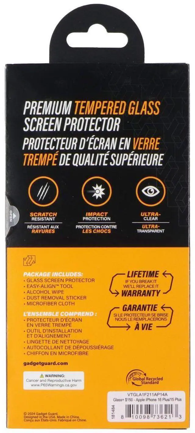 Gadget Guard Glass Screen Protector for Apple iPhone 16 Plus/15 Plus
