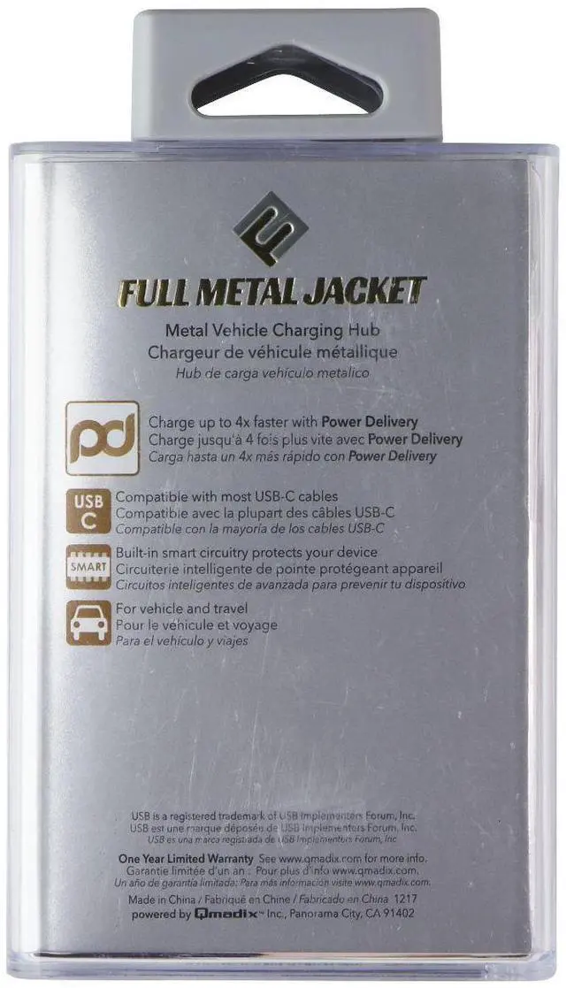 The Qmadix Full Metal Jacket USB-C Power Delivery Car Charger. Silver Version. Features:USB-C Car ChargerCharge up to 4x faster with Power DeliveryBuilt-in smart circuitry protects your device