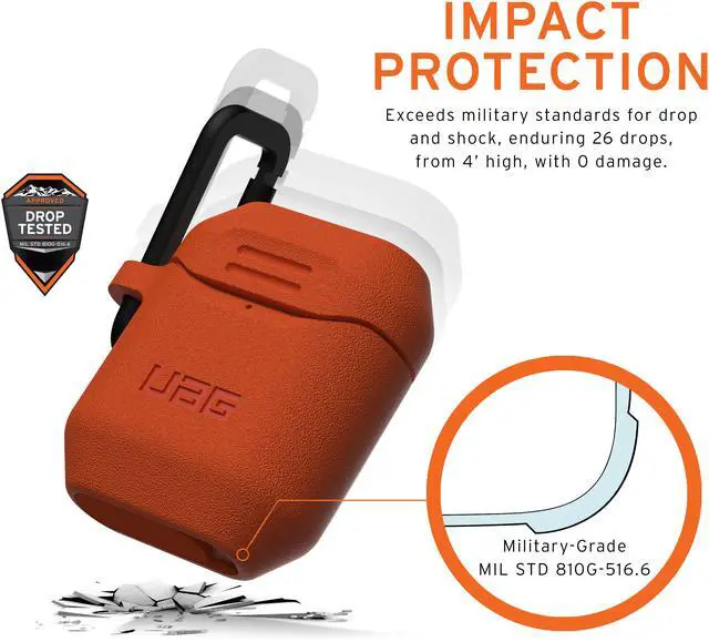 Standard Issue Silicone_001 Airpods Gen 1 & 2 Silicone case provides a new level of protection for your Aiprods. With a unique grip texture, sleek square detachable carabiner, & supreme fit this is the ultimate Airpods cover. It's 1 piece design meets mil-spec drop protection standards/testing & also includes a lighting port cover to keep out dust and other debris. Premium protection, design & convenience for your Airpods is here.