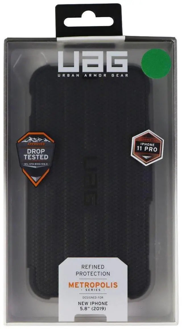 The Urban Armor Gear Metropolis Series Folio Case for Apple iPhone 11 Pro Smartphones. Model: (111706114040). Black version.
