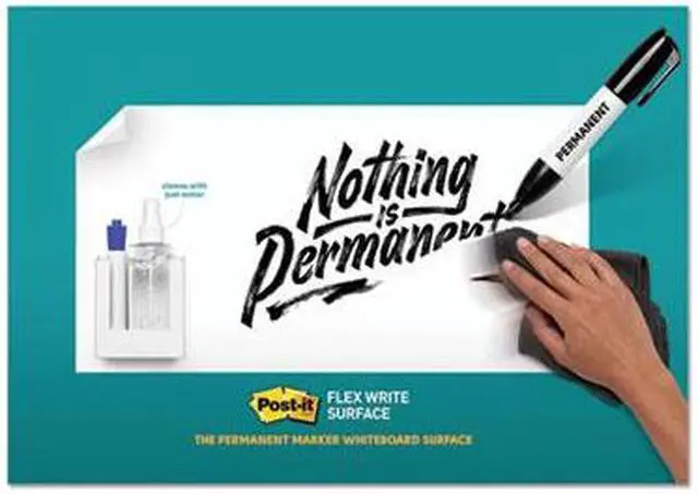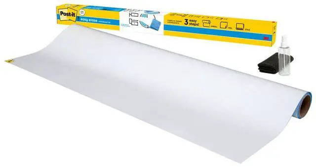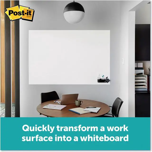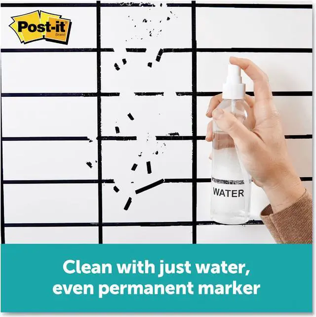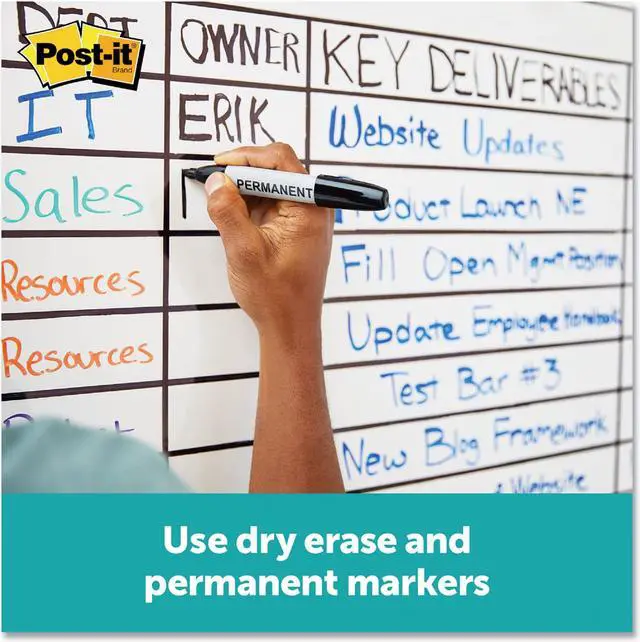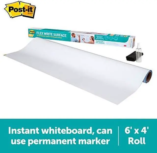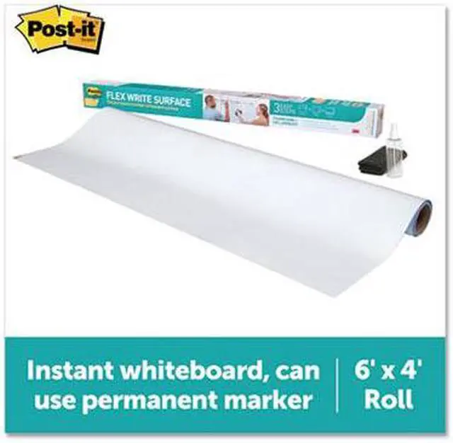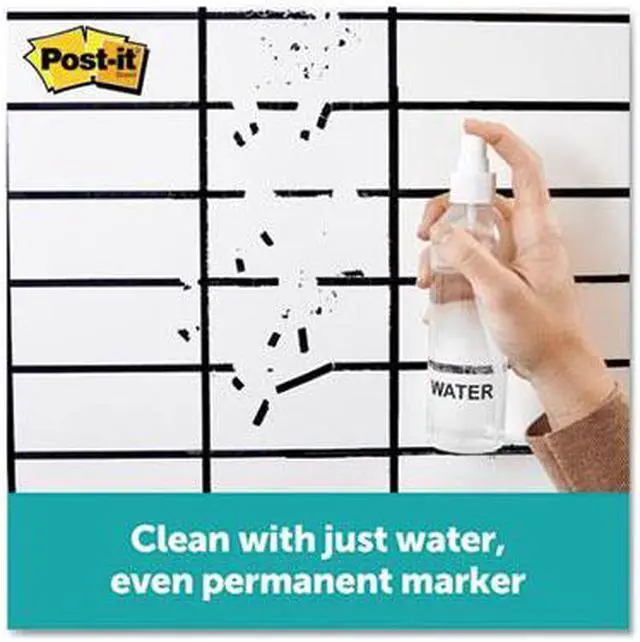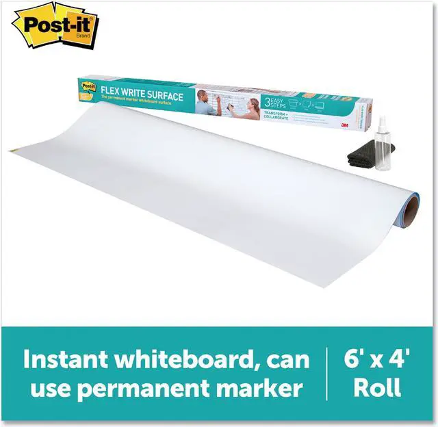 The dry erase whiteboard you can use with dry erase and permanent markers to help track due dates, to do's and metrics for your team projects. Transform your space by resurfacing a blackboard, stained whiteboard or cover an entire wall. With the use of permanent markers, there is less chance of accidental smearing or erasing, and the permanent marker wipes away with just water. Whenever you want to brainstorm, present or track projects, Post it® Brand is ready to help you succeed. Board Type: Dry Erase; Board Width: 72"; Board Height: 48"; Surface Material: Permanent Marker Whiteboard Surface.
