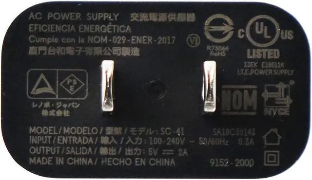 Lenovo (5V/2A) Single USB Wall charger Travel Adapter - Black (SC-41)