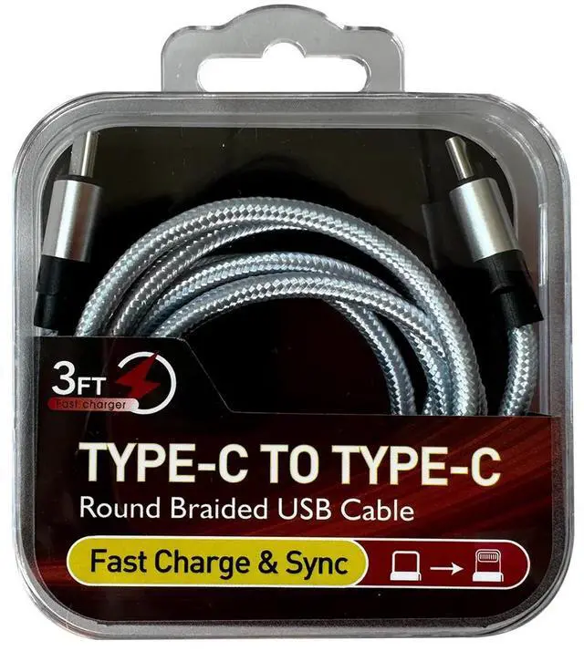 • Power Delivery USB-C to C Fast Charging & Sync Nylon- Braided 3FT Cable in Silver