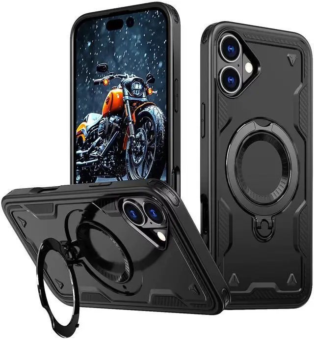 • Reiko 360 Degree Rotating Magnetic Versatile Stand Black Compatible with iPhone 16 Plus