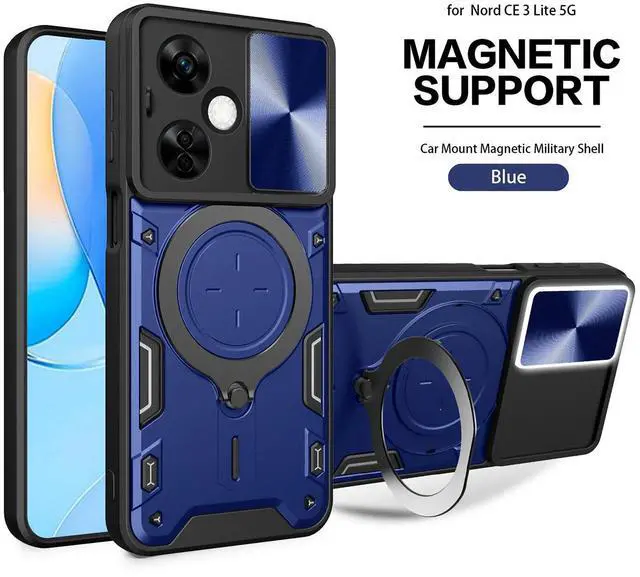 TPU PC Shockproof Magnetic Phone Case with Free Adjustment Ring Holder For ONEPLUS NORD N30 5G in Blue