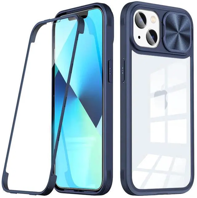 Full Protection With Mobile Phone Protective Film Slide Camera Lens Phone Case For iPhone 14 Plus In Navy
