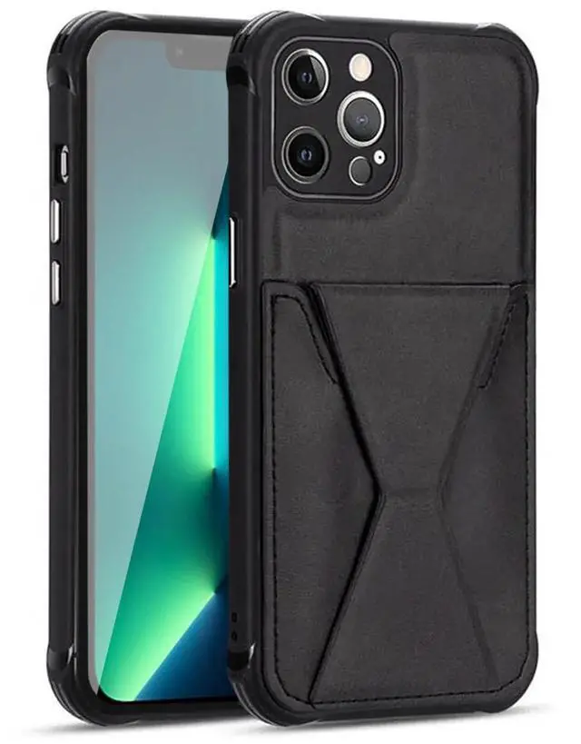 • TPU Leather Phone Case for Apple iPhone 14 PRO with Card Holder Strap In Black