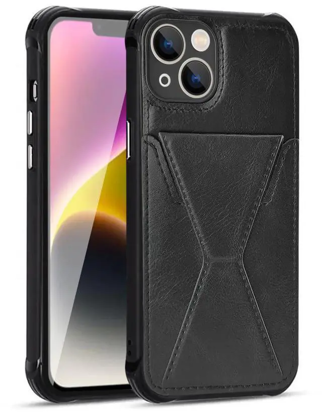 • TPU Leather Phone Case for Apple iPhone 14 Plus with Card Holder Strap In Black