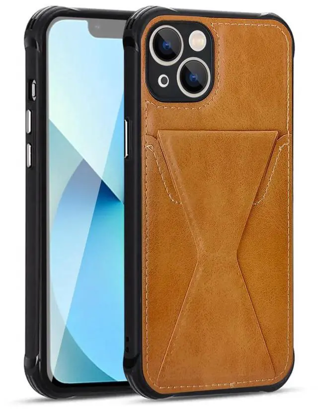 • TPU Leather Phone Case for Apple iPhone 13 with Card Holder Strap In Brown