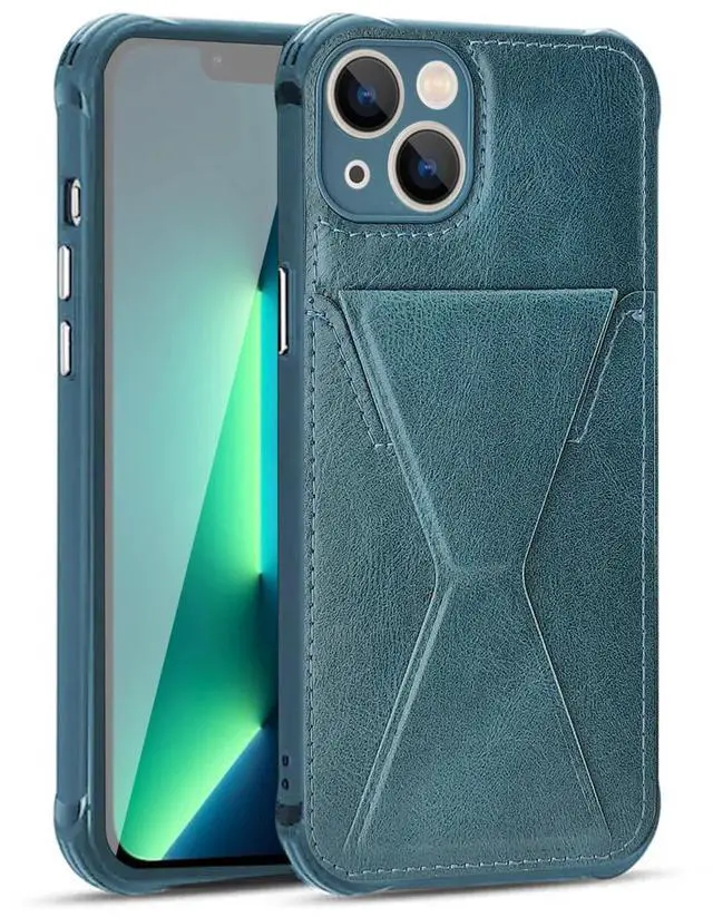 • TPU Leather Phone Case for Apple iPhone 14 with Card Holder Strap In Navy