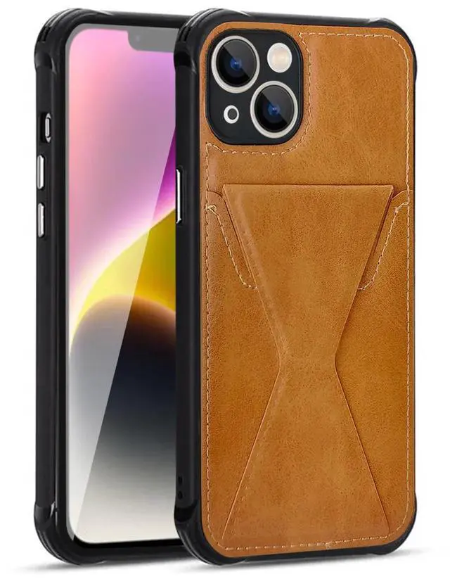 • TPU Leather Phone Case for Apple iPhone 14 with Card Holder Strap In Brown