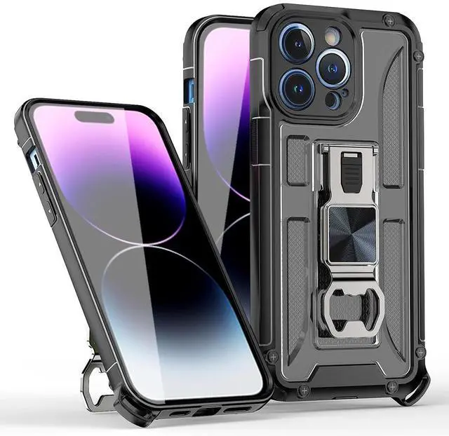 • Kickstand Ring Holder/Bottle Opener with Magnetic Car Mount for IPHONE 14 PRO In Black