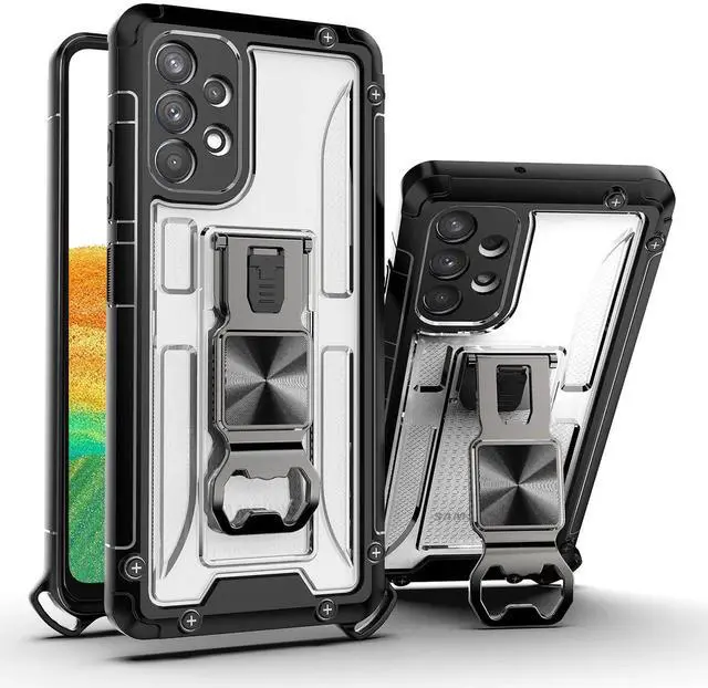 • Kickstand Ring Holder/Bottle Opener with Magnetic Car Mount for Samsung Galaxy A33 5G In Clear