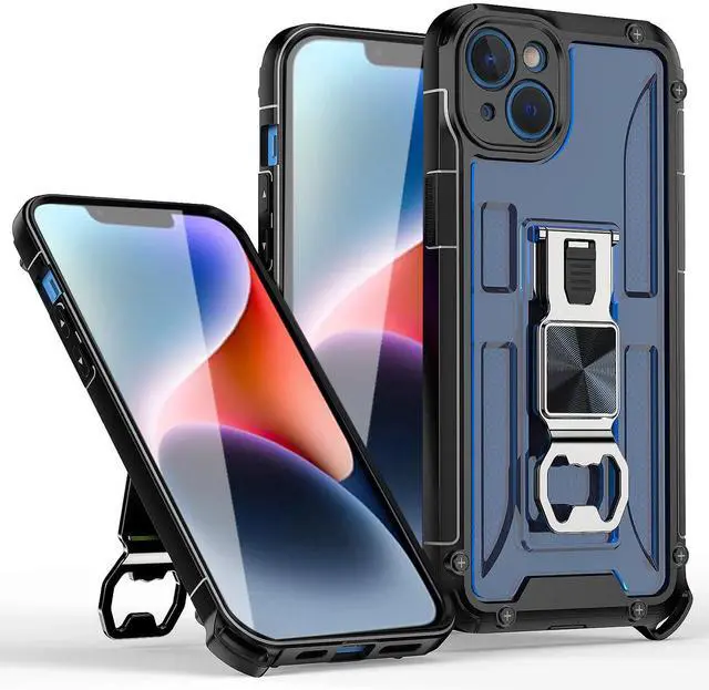 • Kickstand Ring Holder/Bottle Opener with Magnetic Car Mount for IPHONE 14 PLUS In Blue