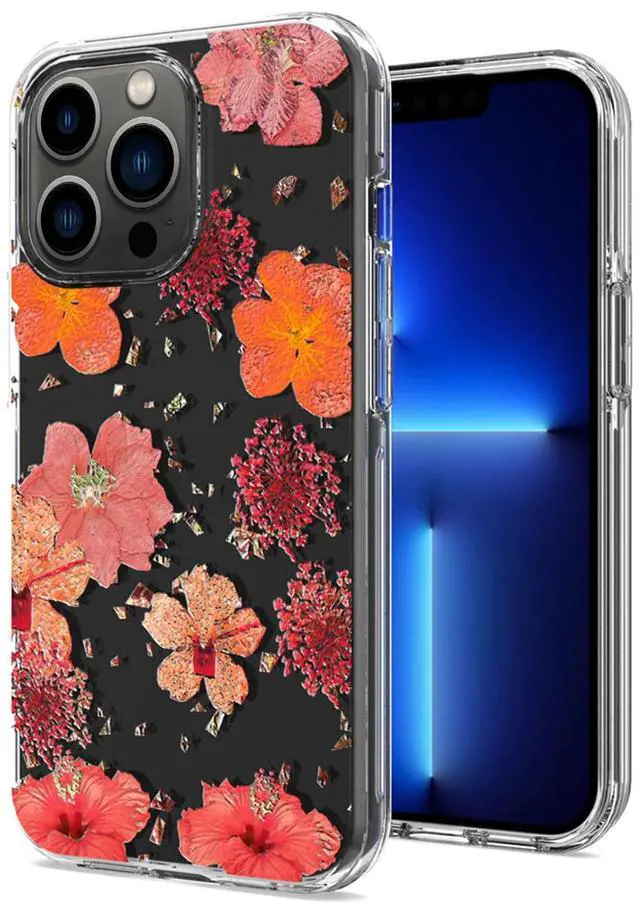 • Pressed dried flower Design Phone case For iPhone 13 Pro In Red