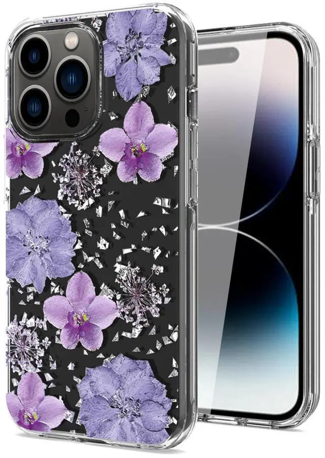 • Pressed dried flower Design Phone case For iPhone 14 Pro In Purple