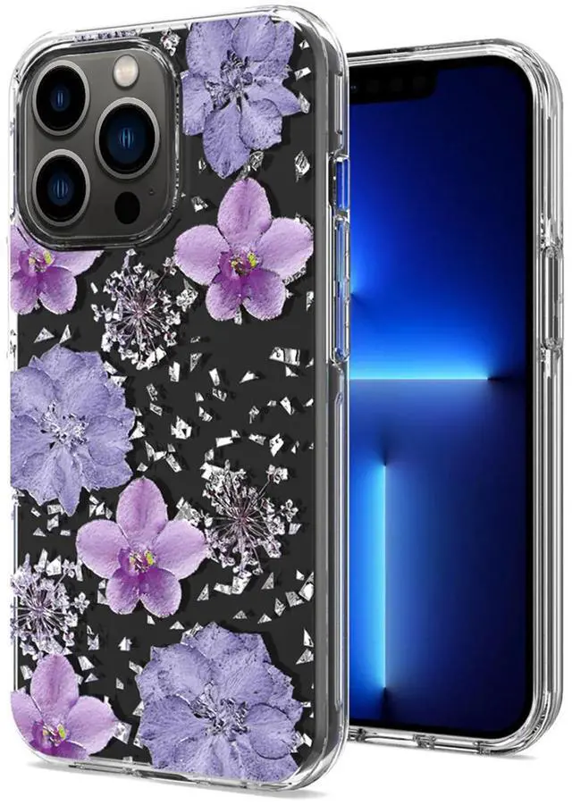 • Pressed dried flower Design Phone case For iPhone 13 Pro Max In Purple