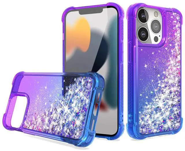 • Shiny Flowing Glitter Liquid Bumper Case For APPLE IPHONE 13 PRO In Purple
