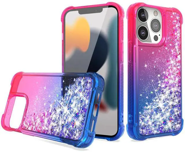 • Shiny Flowing Glitter Liquid Bumper Case For APPLE IPHONE 13 PRO In Pink