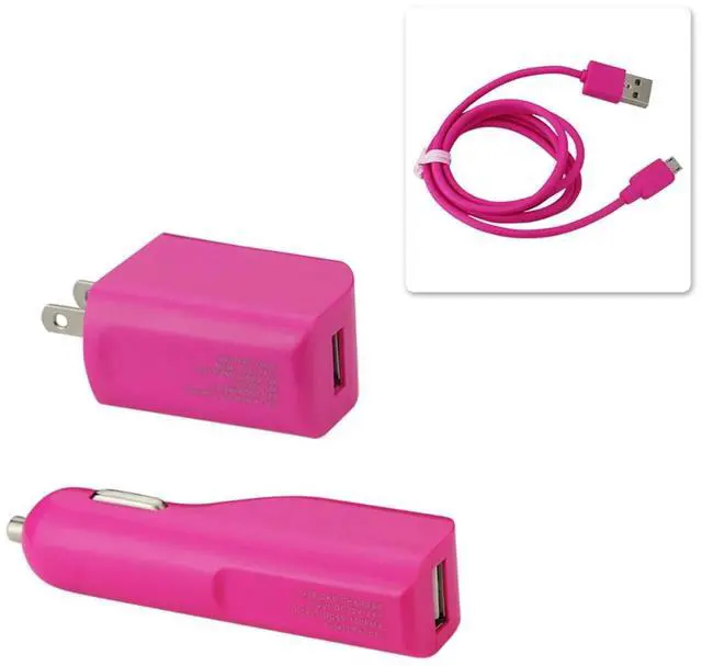 • REIKO MICRO 1 AMP 3-IN-1 CAR CHARGER WALL ADAPTER WITH USB CABLE IN HOT PINK