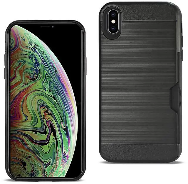 - Dual layer hybrid with card holder - Slim armor case can fit almost anywhere - Made with open slot on the back of the case to store personal card - easy to slide In and out of pocket - Well cutout for buttons and audio plug great protection - This phone model is also known as iPhone XS Max.