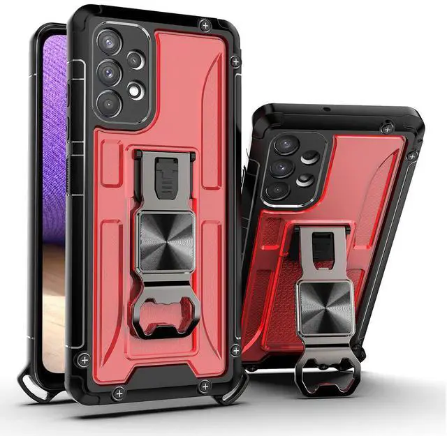 • Kickstand Ring Holder/Bottle Opener with Magnetic Car Mount for Samsung Galaxy A32 In Red