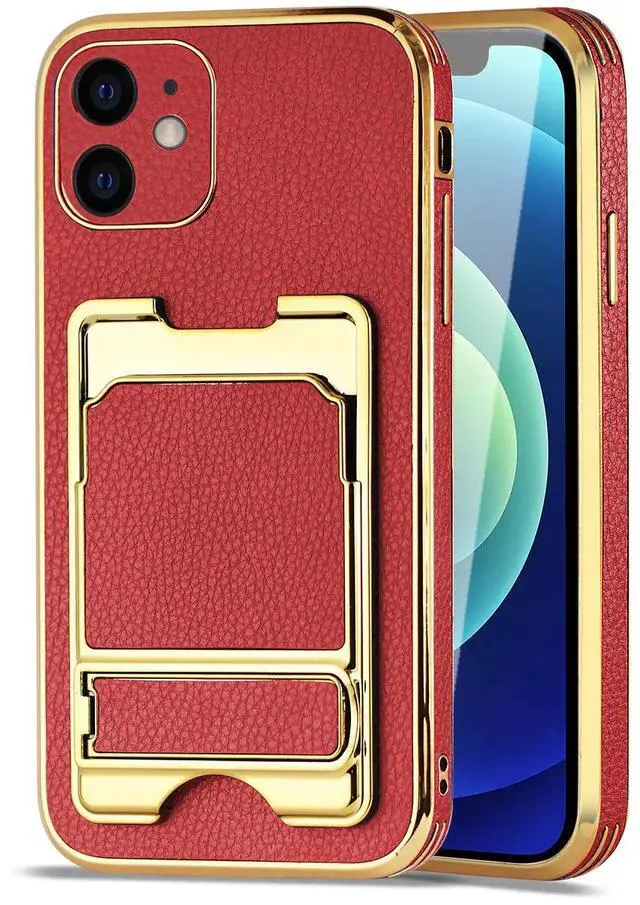 • Reiko IPHONE 12 Leather Case with Card Holder In Red