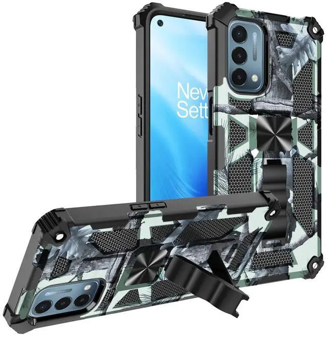 • Built-in Kickstand TPU Case with Magnetic Mount for ONEPLUS NORD N200 5G in Tree leaf patterns
