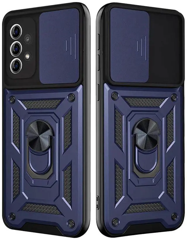 Kickstand Ring Holder with Slide Camera Cover TPU Shockproof Case and Magnetic Car Mount for SAMSUNG GALAXY A72 5G In Blue