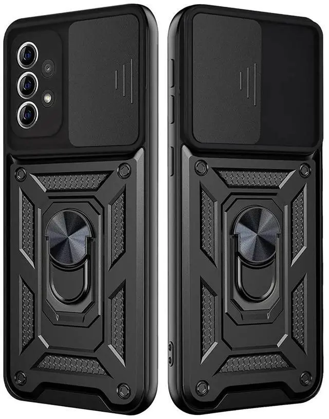 Kickstand Ring Holder with Slide Camera Cover TPU Shockproof Case and Magnetic Car Mount for SAMSUNG GALAXY A72 5G In Black