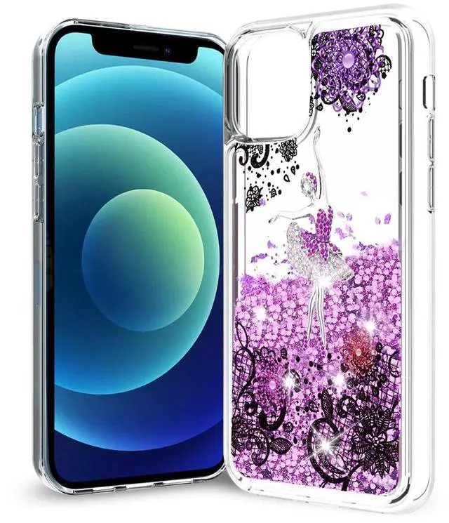 • Reiko iPhone 12 Mini Glitter Case Moving Quicksand Purple Ballerina