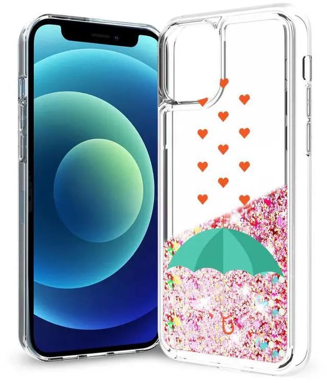 • Reiko iPhone 12 Mini Glitter Case Moving Quicksand Rainbow Umbrella