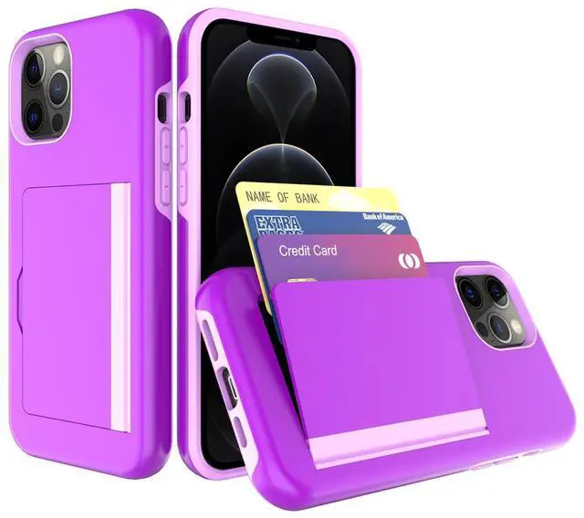 • TPU PC Hybrid 2-in-1 Flip Card Holder Phone Case for Apple iPhone 12 / 12 Pro In Purple