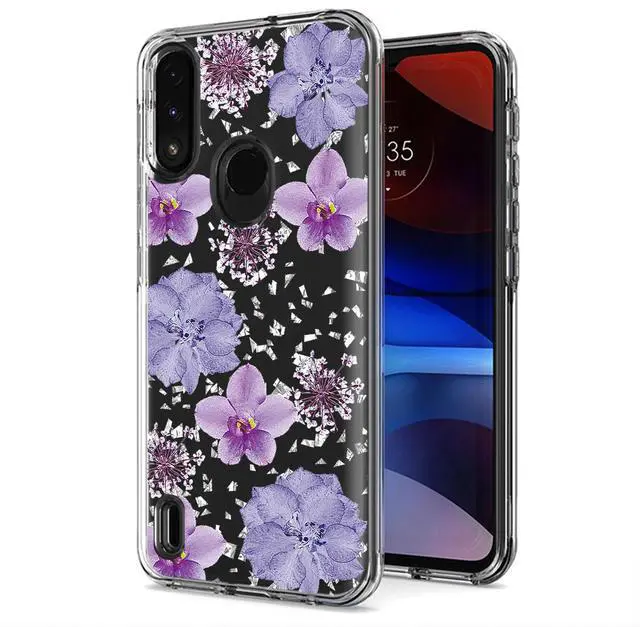 Pressed dried flower Design Phone case for Moto E7 Power 2021 In Purple