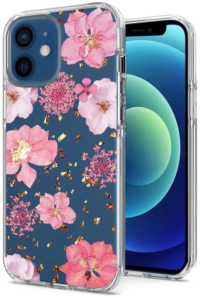 Cute Flower case: This case is made of soft silicone and natural flowers and leaf embedded design. Pure manual design giving your iPhone 12 MINI a unique and special look.