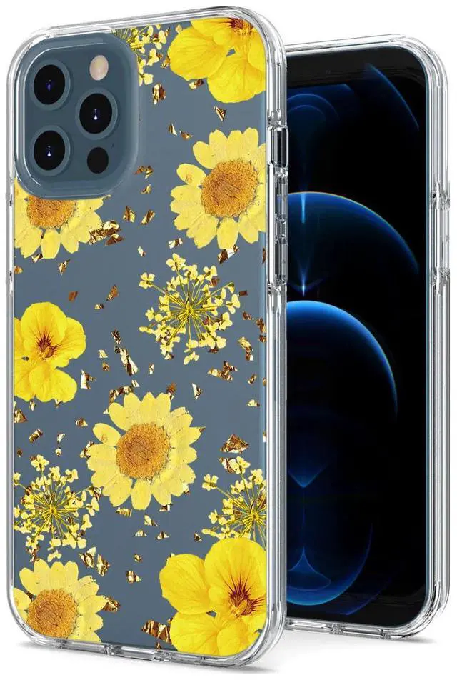 Cute Flower case: This case is made of soft silicone and natural flowers and leaf embedded design. Pure manual design giving your iPhone 12 PRO MAX a unique and special look.
