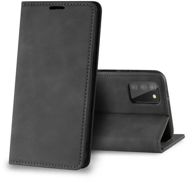 • Magnetic wallet Leather phone case For Samsung Galaxy A02S (Black)