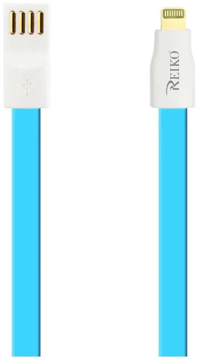 • REIKO 8 PIN FLAT USB GOLD PLATED DATA CABLE 3.9FT WITH CABLE TIE IN BLUE