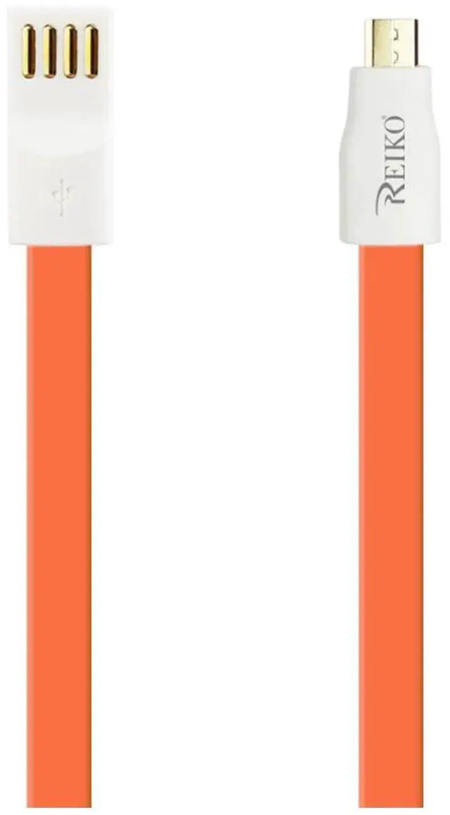 • REIKO FLAT MICRO USB GOLD PLATED DATA CABLE 3.9FT WITH CABLE TIE IN ORANGE