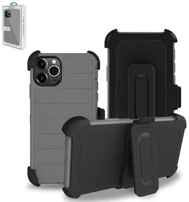 • 3-In-1 Hybrid Heavy Duty Holster Combo Case For APPLE IPHONE 11 PRO In Gray
