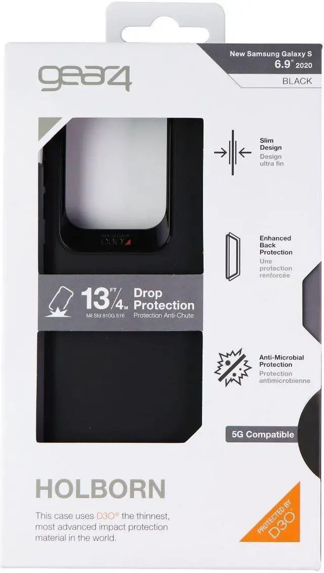 Features: - Protected by D3O, D3O material offers the thinnest and most advanced protection against knocks and drops. It is also used in helmets, gloves and other protective gear used around the world by soldiers, professional athletes, and motorcyclists - Military Standard Drop Test, The Gear4 Holborn Samsung Galaxy S20 Ultra case is drop tested up to 13 ft/ 4m for tough impact protection of your device - Enhanced Back Protection, The Gear4 Holborn Samsung Galaxy S20 Ultra case features reinforced D3O protection on the entire back interior providing ultimate protection in a slim, soft-touch case - Easy Access, Gear4 Holborn Samsung Galaxy S20 Ultra case features precision cut-outs which allow for easy access to all buttons and ports - Wireless Charging Compatible, The Holborn Samsung Galaxy S20 Ultra case features a slim design with edge to edge protection and is wireless charging compatible