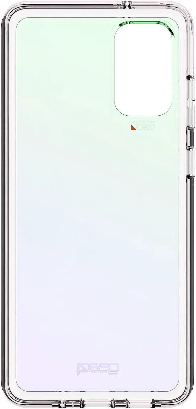 Gear4 Crystal Palace Case for Samsung Galaxy (S20+). Iridescent and Clear. Features: -Slim Design. -Anti-Microbial Protection. -13ft Drop Protection. -Anti-Yellowing and Anti-Fingerprint. -Wireless Charging Compatible.
