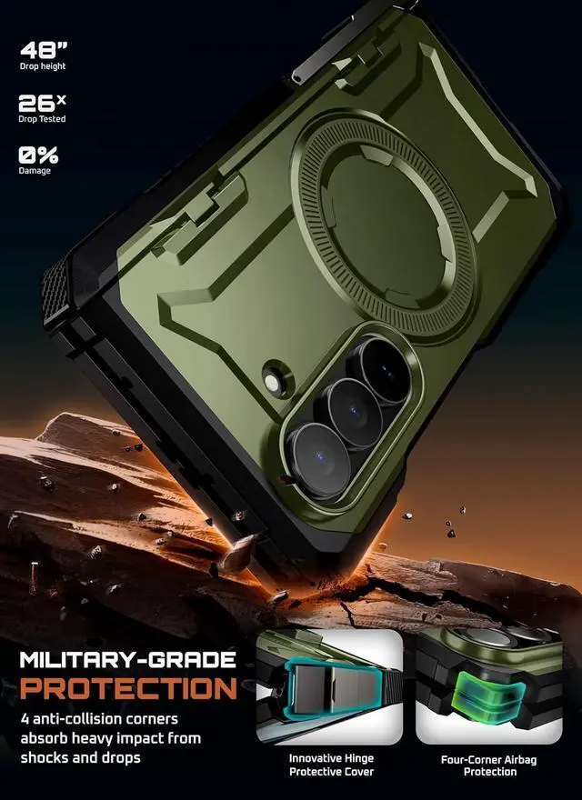 [Military-Grade Drop Protection]: Full hinge coverage and a four-corner airbag design protect against impact from drops. Drop-tested from 20 feet and certified to MIL-STD-810H- 516.8 military standards.