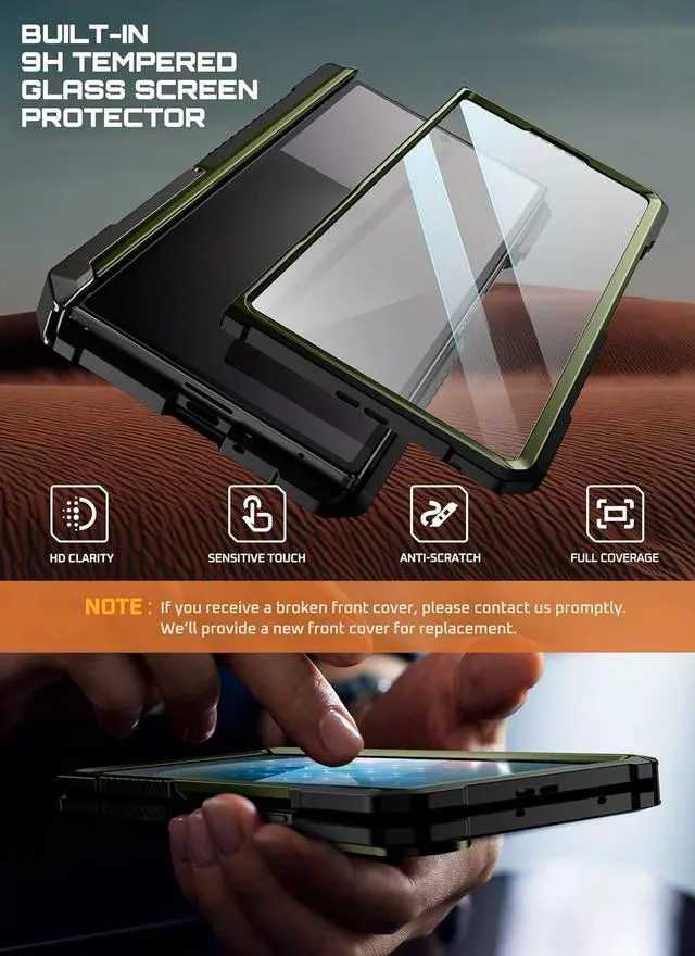 [Built-in HD Screen Protector]: The front frame includes a built-in 0.33 mm HD tempered glass protector with 95% light transmittance, guarding against scratches without compromising touch sensitivity.