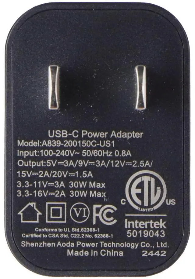 LBT (30W) Single Port USB-C Power Adapter - Black (A839-200150C-US1)