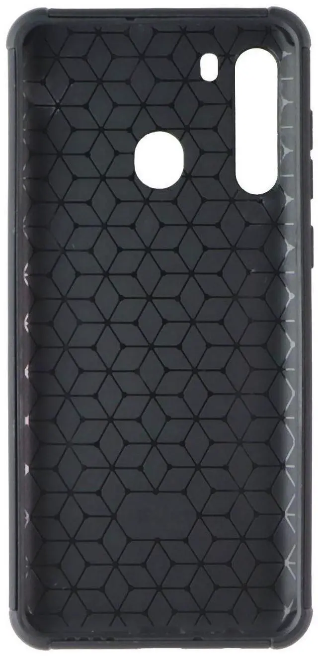 The ASMYNA Sturdy Hybrid Rugged Case with Kickstand for Samsung Galaxy A21. Black version.